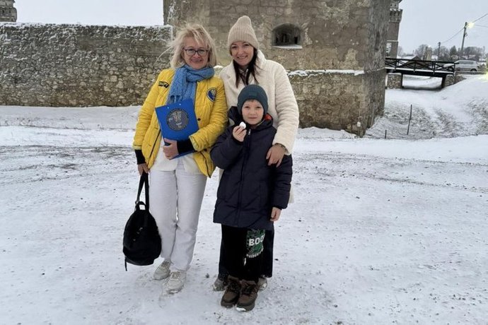 Екскурсоводка Юлія Смоляк із сином Максимом та керівницею Національного реєстру рекордів України Ланою Вєтровою. Юлія Смоляк