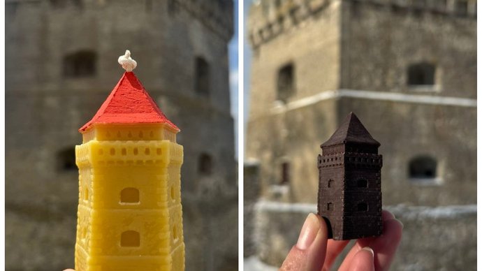 "Нам виготовили 3D модель східної вежі замку. Зробили форму. Висота цієї свічки — 15 сантиметрів. Її можна розглядати зблизька й ознайомитися з виглядом. Цю вежу з чотирьох обрали тому, що в неї прямі стіни, їх легше відтворити у формі".