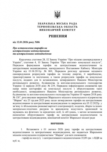 Фото ілюстративне Виконавчий комітет Збаразької міської ради ухвалив рішення про внесення змін до структури тарифів на послуги з централізованого водопостачання та водовідведення.