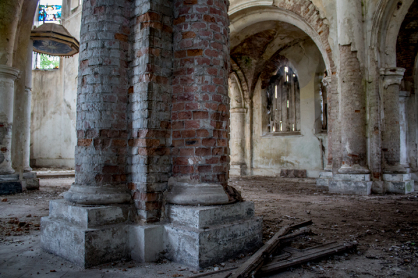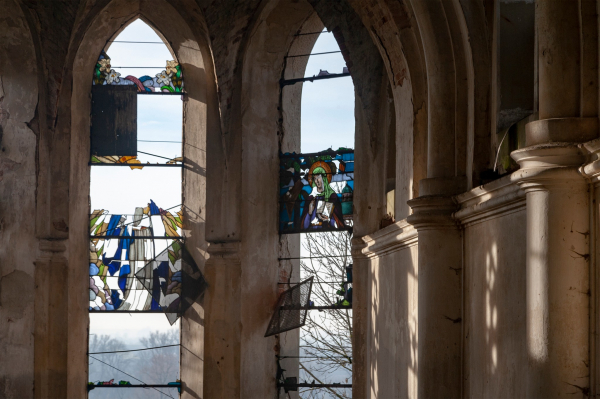 Будівля пережила зміну влад, її неодноразово переоблаштовували під господарські потреби – зерносховище й склад добрив, для чого у східній стіні навіть розбили отвір для заїзду вантажівок. Близько 20 років тому пожежа знищила дах і унікальні французькі вітражі – нині від них залишилися лише фрагменти. Усередині пустка, а довкола – старі дерева та колонія граків, що створюють враження готичної тиші.