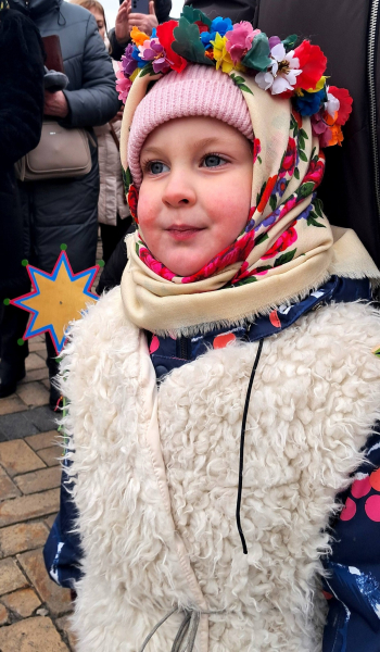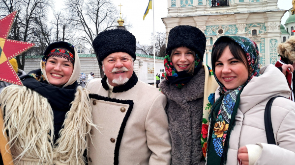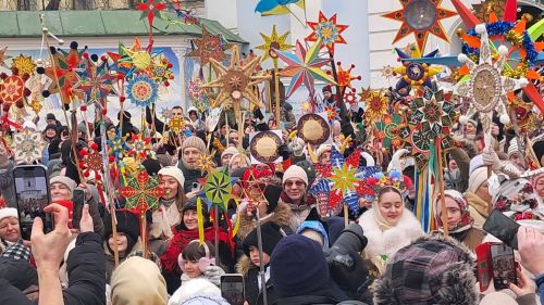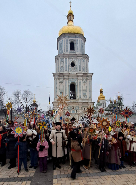 Різдвяні колядники зібралися між собором, який у минулому знищили колонізатори-атеїсти, а в незалежній Україні відбудували, та виставкою спаленої техніки російських окупантів. У ході брали участь люди різного віку – від дітей до літніх, серед них і ветерани на протезах. Завершилася коляда на Майдані – серед тисяч прапорів на честь полеглих захисників України.