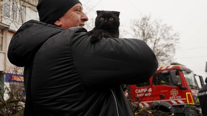 "На другому поверсі знайшли 8-річну кішку Мію, яку налякав вибух. Вона сховалася у квартирі. Її теж повернули в руки щасливих господарів", — йдеться у повідомленні.