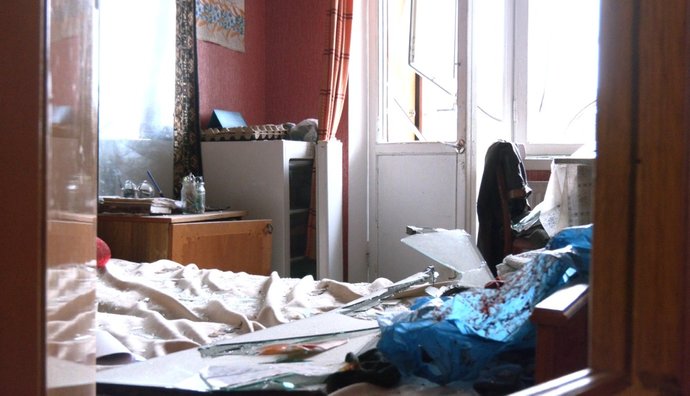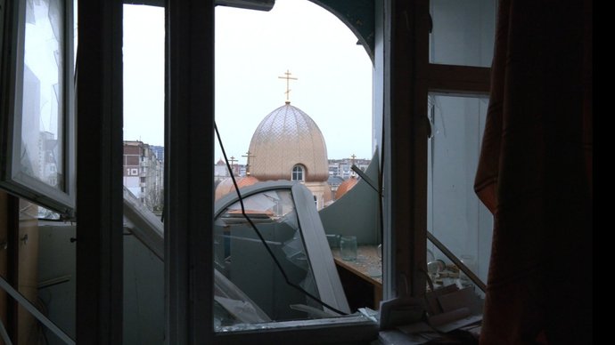 Відчиняю двері на кухню і бачу купу диму, просто діра в стіні замість вікна. Якби, наприклад, я була на кухні, то воно могло би просто розірвати і поранити мене тою рамою чи осколками. Бо навіть з сусіднього балкона дерев’яна рама опинилася в мене на балконі", — говорить Вероніка Караіскоу.