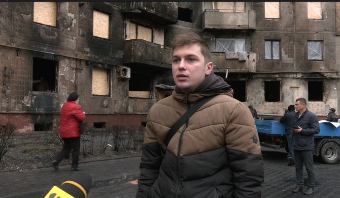 "Я живу на Куліша, 10. Це за цим будинком. У мене тут жили три однокласники. Назар Махинка живий, все нормально ніби, крім його квартири. Руслан Бобик загинув. Жив на 3 чи 4 поверсі.