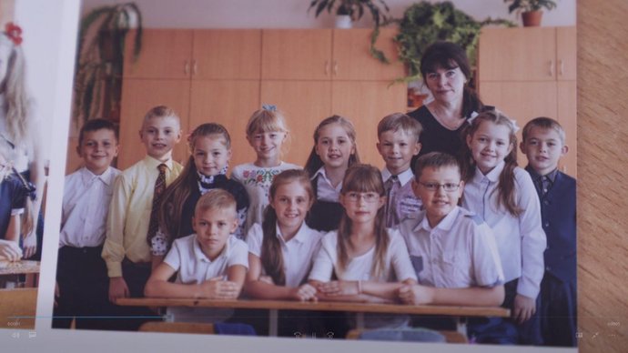Класна керівниця хлопців Неля Романюк має фото їхнього класу. Жінка розповідає, що у школі є традиція — щороку робити фотосесію на шкільний літопис.
