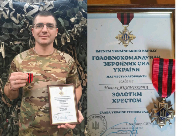 Наш земляк, військовослужбовець Збройних Сил України Микола Якимович, відзначений Золотим хрестом Головнокомандувача ЗСУ.