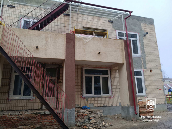 «На даний час у садочку оновлено понад 90% усіх вікон, проводиться реконструкція вхідних сходів, утеплення цоколю. Продовжується влаштування відмостки по периметру дитячого садочка. Завершуються роботи на даху, зокрема влаштування вертикальних примикань покрівлі з ПВХ мембрани. Також встановлюють аератори та ущільнюють місця навколо каналізаційних труб», – поділилися у міськраді.