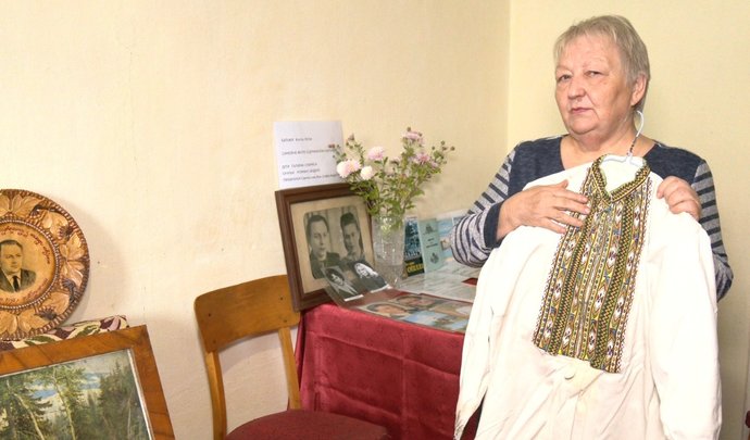 У Великому Глибочку поблизу Тернополя, в квартирі, де впродовж 47 років жив Петро Медведик, його доньки зберігають речі, які належали батькові. Лариса Вишневська показує татову вишиту сорочку: