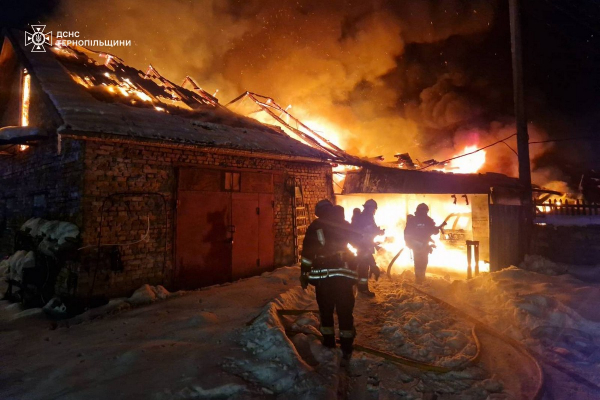 Фото: ДСНС Тернопільщини Протягом 17 січня рятувальники ДСНС ліквідували серію масштабних пожеж у трьох районах Тернопільської області та в обласному центрі.