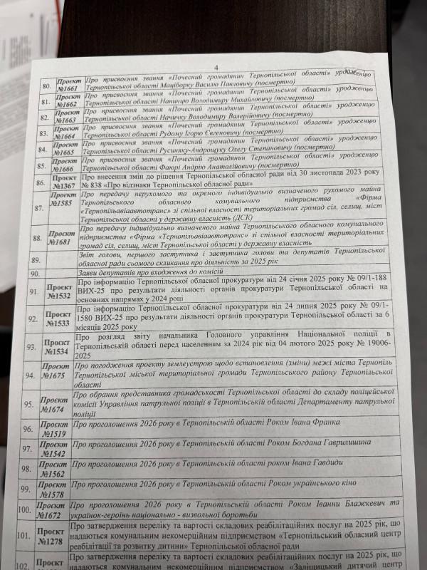 Депутати Тернопільської обласної ради проголосували вцілому за проєкт про присвоєння військовим звань “Почесний громадянин Тернопільської області”. Суспільне Тернопіль